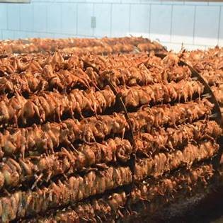 Um assado tradicional de carnes variadas frango, porco, coelho preparado lentamente no espeto, regado com temperos simples e muito aroma.